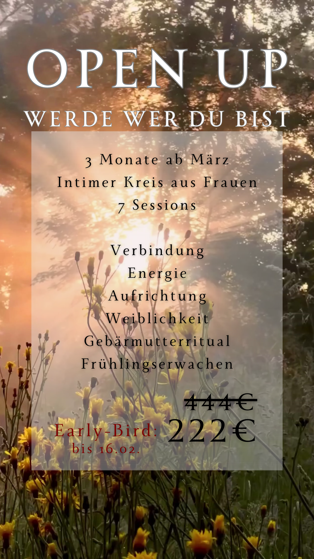 77€/Person (222€ für 3 Monate) OR 144€/Paar (422€ für 3 Monate) - Womb Wisdom Ceremony: 44€